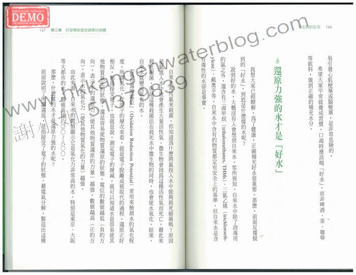 他書中教授不同的健康養生方法,其中提及“還原力強的水才是‘好水'”!